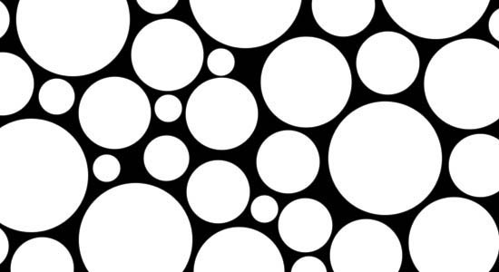 3、使用键盘上面的‘[’ 和’]‘ 两个按键,调整笔刷的大小,继续在画布上面绘制更多的圆形点。注意你放置圆点的位置!所有的圆点都不能有所重合,每一圆点周围都有黑色的部分。