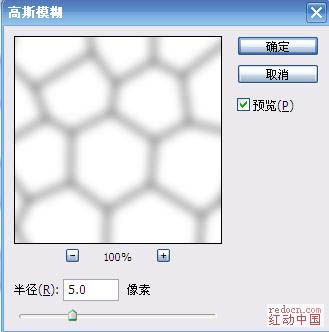 | 4、执行:滤镜 > 模糊 > 高斯模糊,数值为5。 |