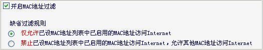 一、选择缺省过滤规则是仅允许已设MAC地址列表中已启用的MAC地址访问Internet