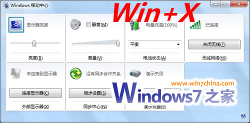 Win + X 打开移动中心